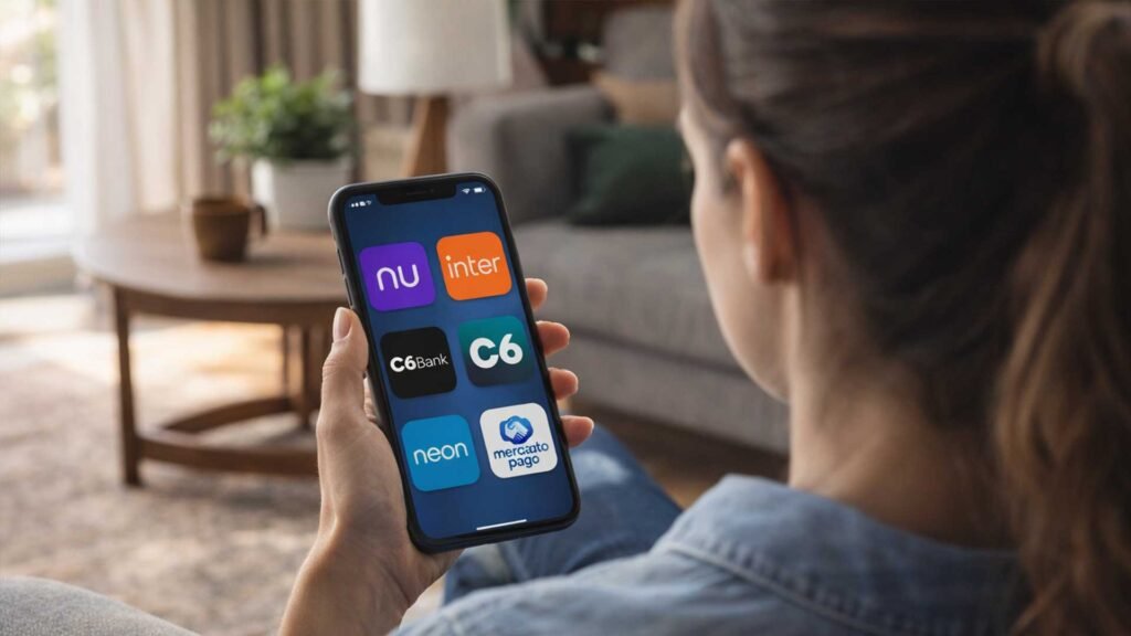 Os bancos digitais são instituições financeiras que funcionam principalmente por aplicativos, sem agências físicas, oferecendo serviços como conta corrente, cartão,